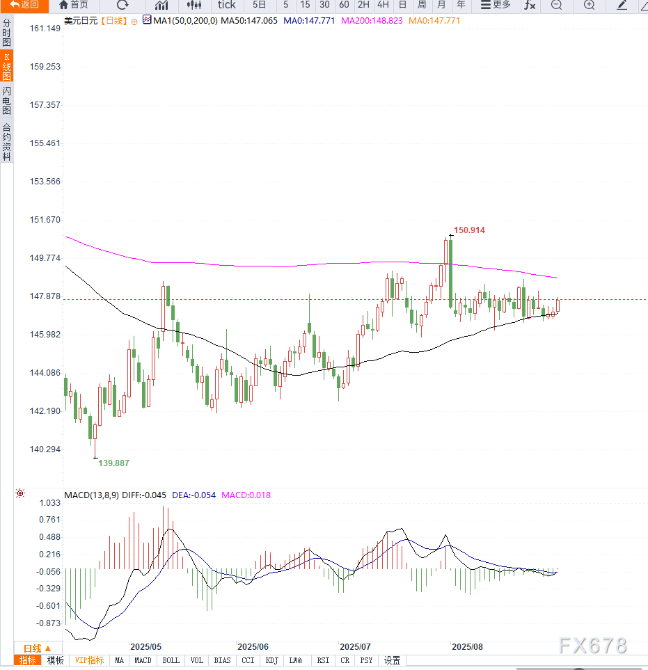 编辑观点:美元兑日元短期走势受BoJ与美联储政策预期分化影响。日元的疲弱更多来自市场避险需求减弱而非基本面恶化。若美国数据疲软确认降息预期,美元可能失去动能,美元兑日元或难以突破148关口,反而有回调风险。